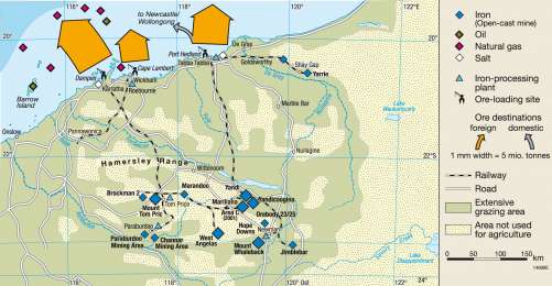 The Australian economy is still characterised by a high proportion of primary goods. Mining products account for almost half of all exports, with roughly twelve (12%) percent of agricultural goods and foodstuffs. The traditional focus of trade flows to Europe has been replaced by a move to Asia, especially Japan. Australia is one of the most important suppliers of raw material for these countries.