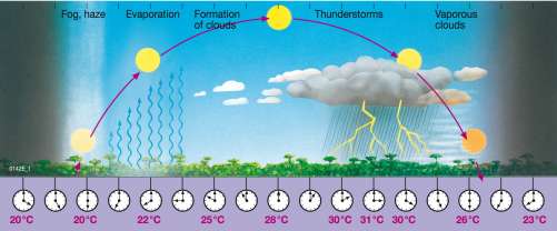 Bordering on these forests are the savannas, which vary according to the number of dry months (three to seven) and the average annual rainfall (400—1600 mm): ranging from wet savanna, dry savanna to thorn savanna. The wet savanna consists of forests that grow to a height of 18—20 m alternating with 1.5—2 m high grasslands and light woodlands. Further polewards is the dry savanna, where it rains fewer than six to seven months a year and the average annual rainfall is less than 1000 mm. Here, is the seat of the rain-green Miombo Forests, which grow between 10—12 m on the plateaus of southern Central Africa. The thorn savanna follows with an annual rainfall of 250—500 mm and only 2—4.5 wet months a year. It is characterised by sparse grass cover and thorn bush.